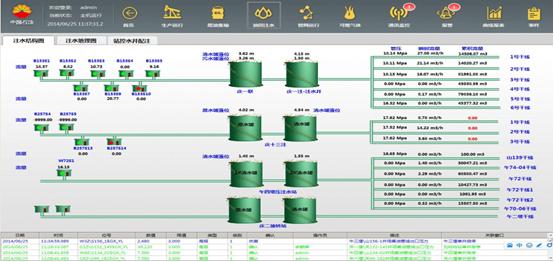 水系統(tǒng)監(jiān)控重點監(jiān)控注水干線、注水閥組、水源井,以總引導界面進入不同的注水站、水源井監(jiān)控界面、注水井配注界面。