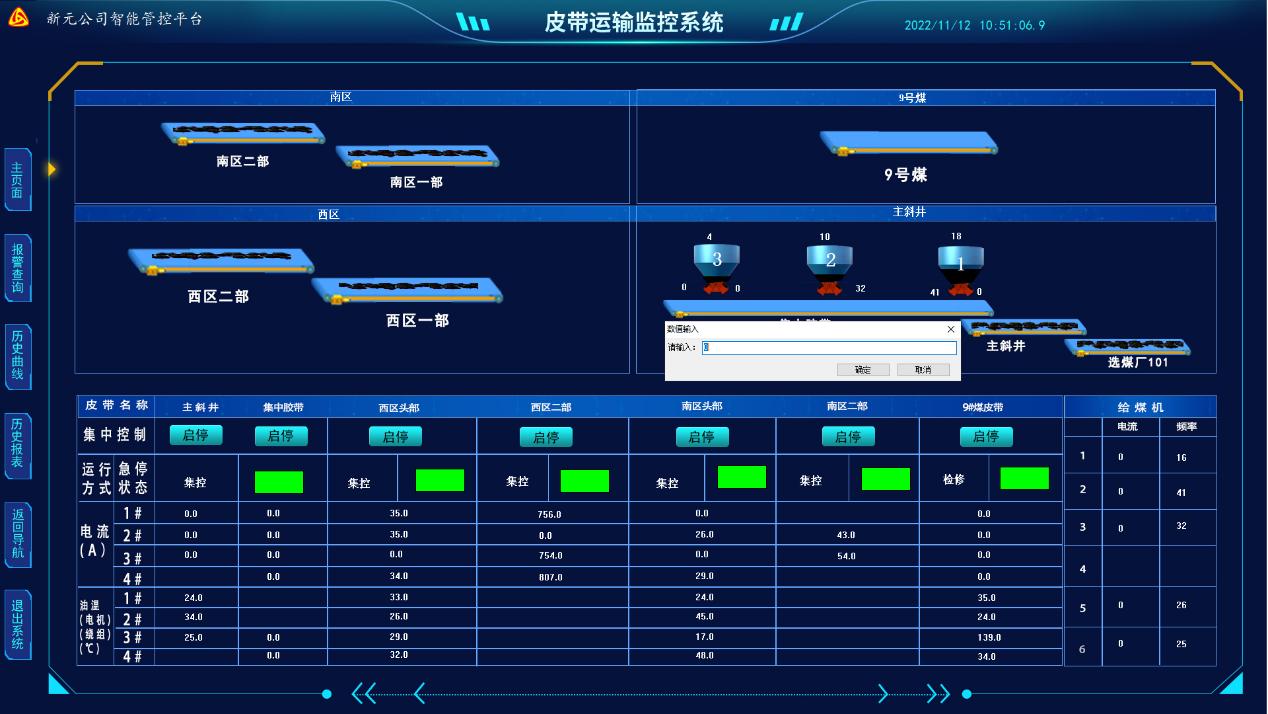 通過eForceCon 工程師站組態(tài)開發(fā),能夠監(jiān)控皮帶、綜采工作面、水倉、壓風(fēng)機等設(shè)備,實現(xiàn)遠(yuǎn)程操作和歷史曲線查詢等功能。