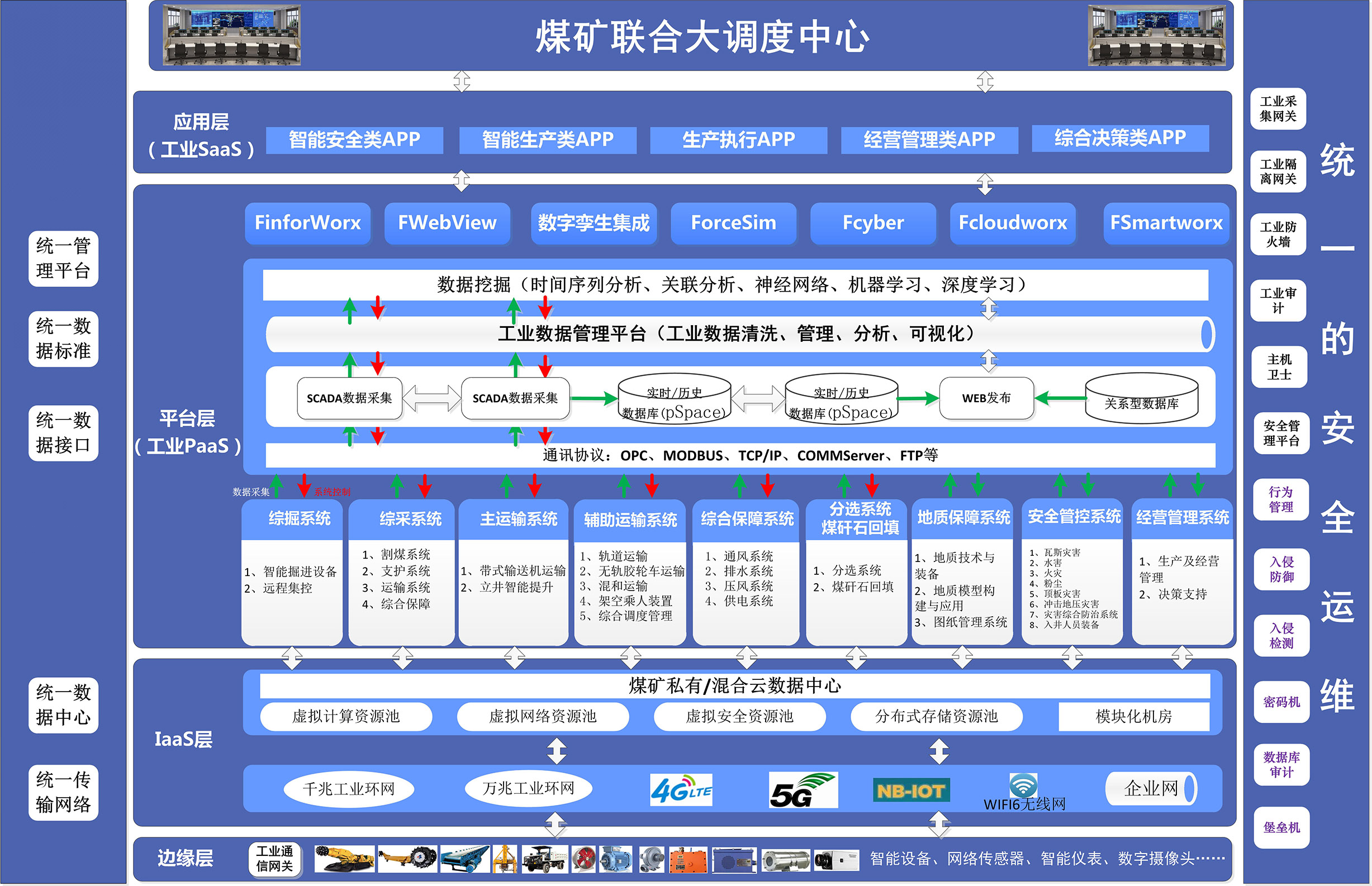 新元公司綜合管控平臺采用力控家族組態(tài)軟件,采用數(shù)據(jù)采集與歷史存儲雙冗余架構(gòu),保證了遠(yuǎn)程監(jiān)控可靠穩(wěn)定運行,實現(xiàn)了主運輸皮帶、局部通風(fēng)機遠(yuǎn)程、綜采工作面、主通風(fēng)機集中監(jiān)控;實現(xiàn)了配電室、井下水倉、瓦斯泵站、壓風(fēng)機等系統(tǒng)無人值守,在管控一體化思想的指導(dǎo)下,結(jié)合工業(yè)自動化技術(shù)、信息化技術(shù)、移動和固定網(wǎng)絡(luò)通信技術(shù)等一系列現(xiàn)代化手段,實現(xiàn)生產(chǎn)過程自動控制和監(jiān)測;同時增加了手機移動端的開發(fā),方便管理人員隨時查看井下設(shè)備的運行情況,提高了管理人員對現(xiàn)場的把控能力,實現(xiàn)了安全和效益的雙提升。
