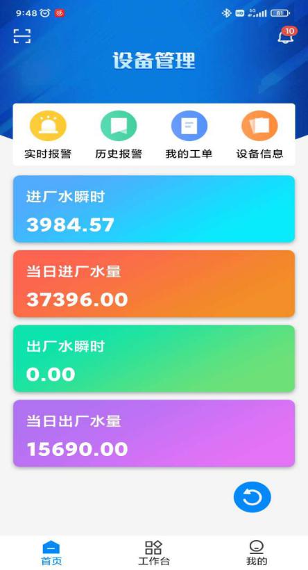 具備二維碼掃描功能,可直接掃描設備二維碼,查看設備基礎信息。展示進出水瞬時值及當日出水統計值。
