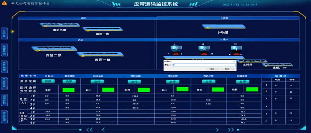 新元公司綜合智能管控平臺(tái)采用力控組態(tài)軟件,以數(shù)據(jù)采集與歷史存儲(chǔ)雙冗余架構(gòu),確保遠(yuǎn)程監(jiān)控可靠穩(wěn)定運(yùn)行,實(shí)現(xiàn)了主運(yùn)輸皮帶、局部通風(fēng)機(jī)遠(yuǎn)程、綜采工作面、主通風(fēng)機(jī)集中監(jiān)控,配電室、井下水倉、瓦斯泵站、壓風(fēng)機(jī)等系統(tǒng)無人值守。
