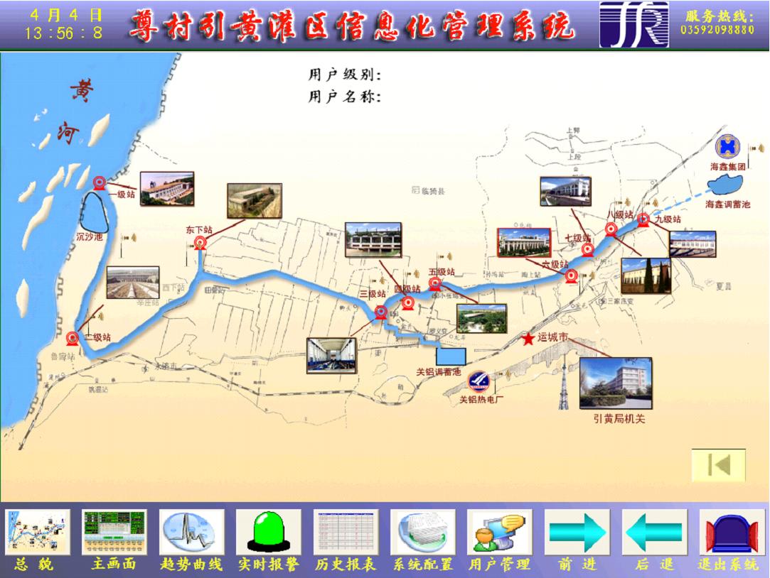 山西運城該項目取水來源為黃河,黃河由于泥沙較大,對設備要求相對較高,山西運城水處理系統共設監控中心一處,位于引黃管理局機關內,泵站現場監控點12處,分別位于尊村引黃一級站至九級站、東下站、海鑫供水站、關鋁熱電廠供水站等?! ?/span>