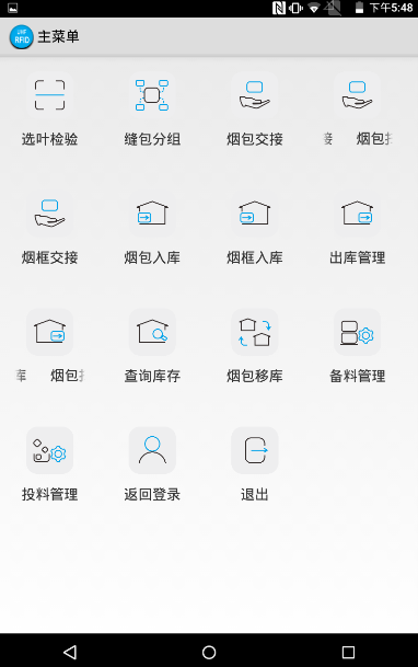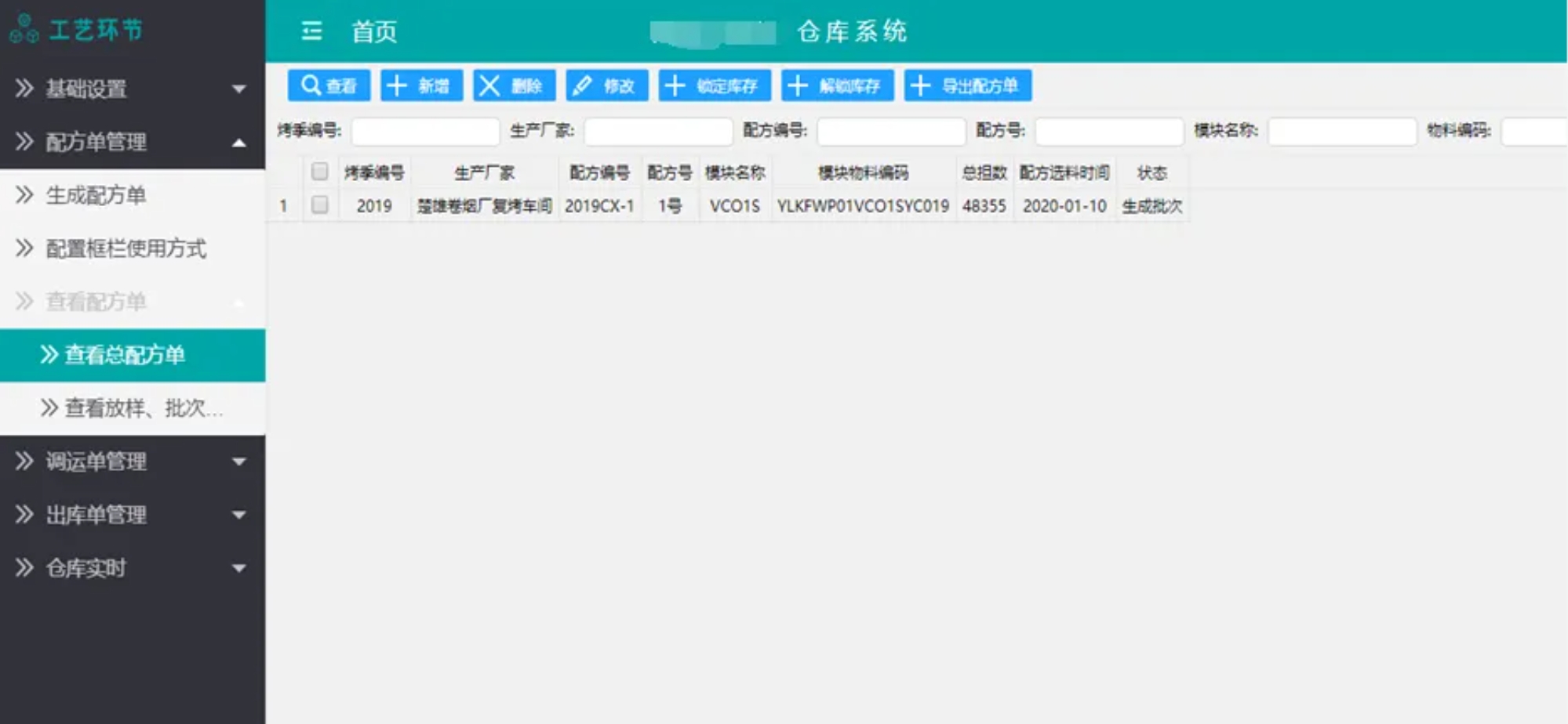 主要包含原煙分選、選葉檢驗(yàn)、分組縫包、煙包/煙框交接、煙包/煙框入庫(kù)、出庫(kù)管理、查詢庫(kù)存、移庫(kù)、備料投料等功能。