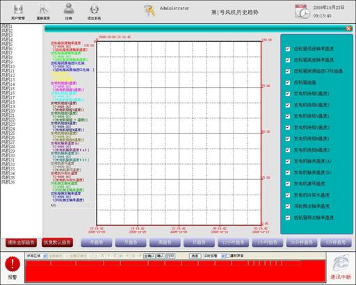 1) 顯示機組的運行數據,如機組的瞬時發電功率、累計發電量、發電小時數、風輪及電機的轉速和風速、風向等,用風玫瑰圖、曲線或圖表的形式直觀地顯示出來。
