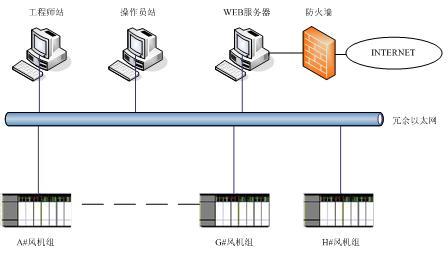 所有風(fēng)電機(jī)組通過光纖以太網(wǎng)連接至主控室的上位機(jī)操作員站,實現(xiàn)監(jiān)控整個風(fēng)場,上位機(jī)監(jiān)控軟件具有如下功能: