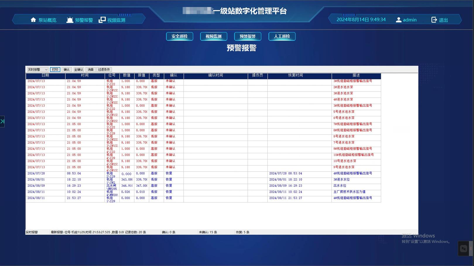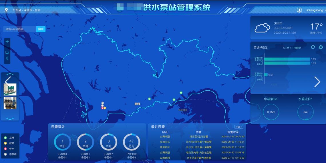 泵站信息管理系統(tǒng)集成了主設(shè)備狀態(tài)監(jiān)測(cè)、建筑物安全監(jiān)測(cè)、視頻監(jiān)控系統(tǒng)、門(mén)禁系統(tǒng)、環(huán)境監(jiān)測(cè)等多個(gè)功能模塊。該系統(tǒng)實(shí)時(shí)監(jiān)測(cè)泵站設(shè)備運(yùn)行狀態(tài)和建筑物的安全狀況,同時(shí)提供視頻監(jiān)控和門(mén)禁管理功能,確保泵站安全運(yùn)行。此外,系統(tǒng)還能監(jiān)測(cè)泵站周?chē)h(huán)境參數(shù),為制定科學(xué)的供水計(jì)劃提供依據(jù),實(shí)現(xiàn)水資源合理利用。