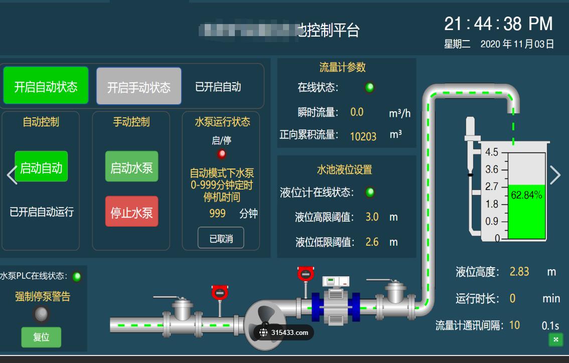 配置高性能服務(wù)器與數(shù)據(jù)存儲(chǔ)設(shè)備,用于接收、處理、存儲(chǔ)泵站數(shù)據(jù)。功能完備的組態(tài)監(jiān)控軟件平臺(tái)具備直觀的人機(jī)交互界面,展示泵站的工藝流程、設(shè)備運(yùn)行狀態(tài)、實(shí)時(shí)數(shù)據(jù)曲線(xiàn)等信息,方便操作人員實(shí)時(shí)了解泵站運(yùn)行情況,實(shí)現(xiàn)遠(yuǎn)程控制操作。