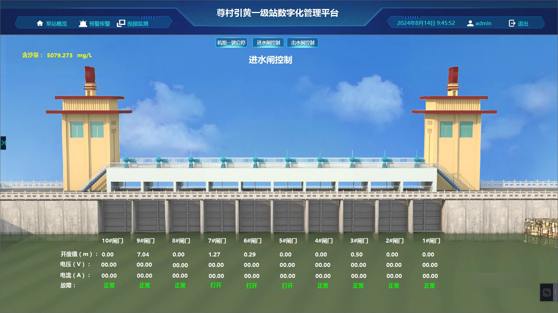 支持閘門控制和開度顯示,具備閘門開度和荷載報(bào)警彈窗,當(dāng)運(yùn)行數(shù)據(jù)達(dá)到設(shè)定值時(shí)自動(dòng)停止,命令值超過(guò)設(shè)定值時(shí)無(wú)法輸入指令。