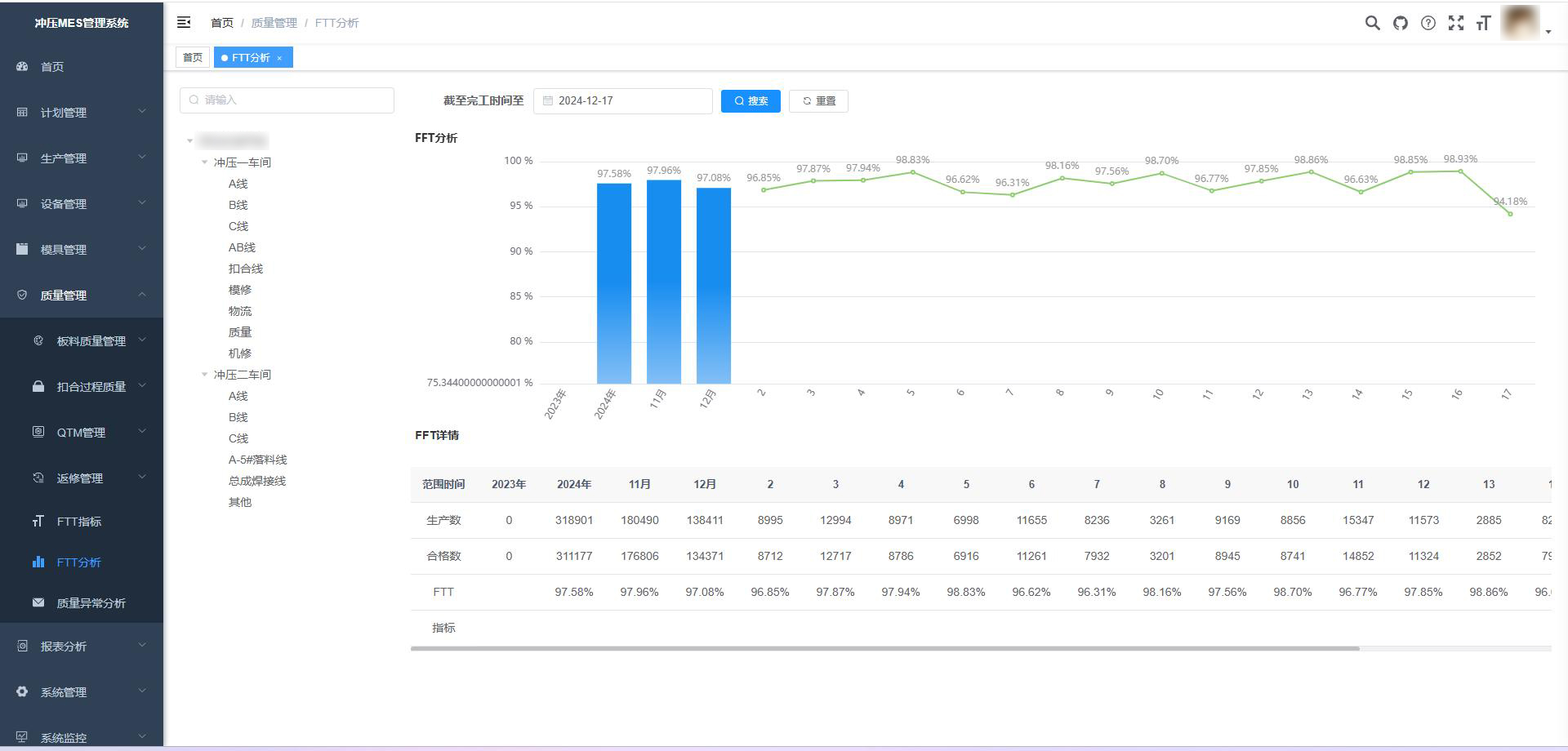 沖壓MES管理系統的成功落地,助力某車企沖壓車間實現了生產過程透明化與核心資源的全生命周期管控。系統通過智能排產優化生產節拍,以全流程質量監控降低不良率,并依托實時數據進行精細化管理,顯著提高計劃達成率、一次合格率、產線可動率等關鍵運營指標,全面提升車間的信息化管理水平,更為集團智能化工廠目標的穩步推進提供了堅實支撐。