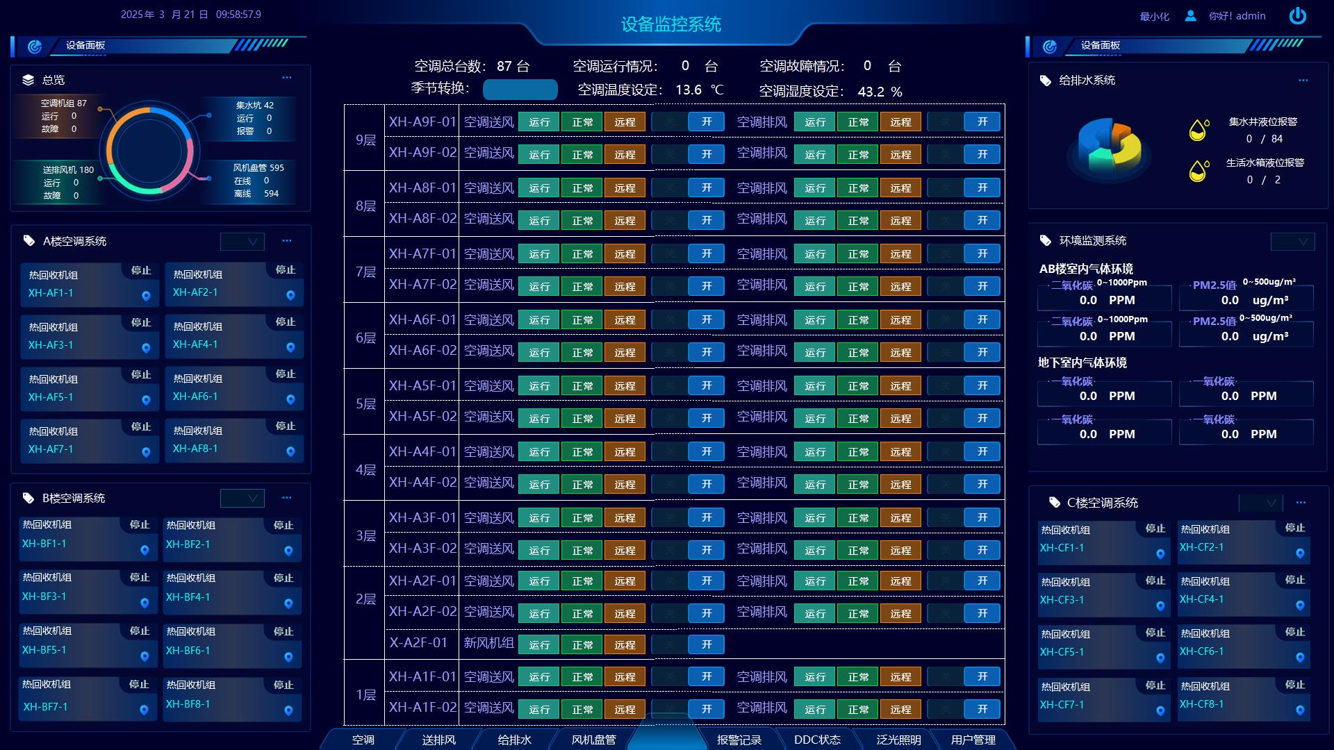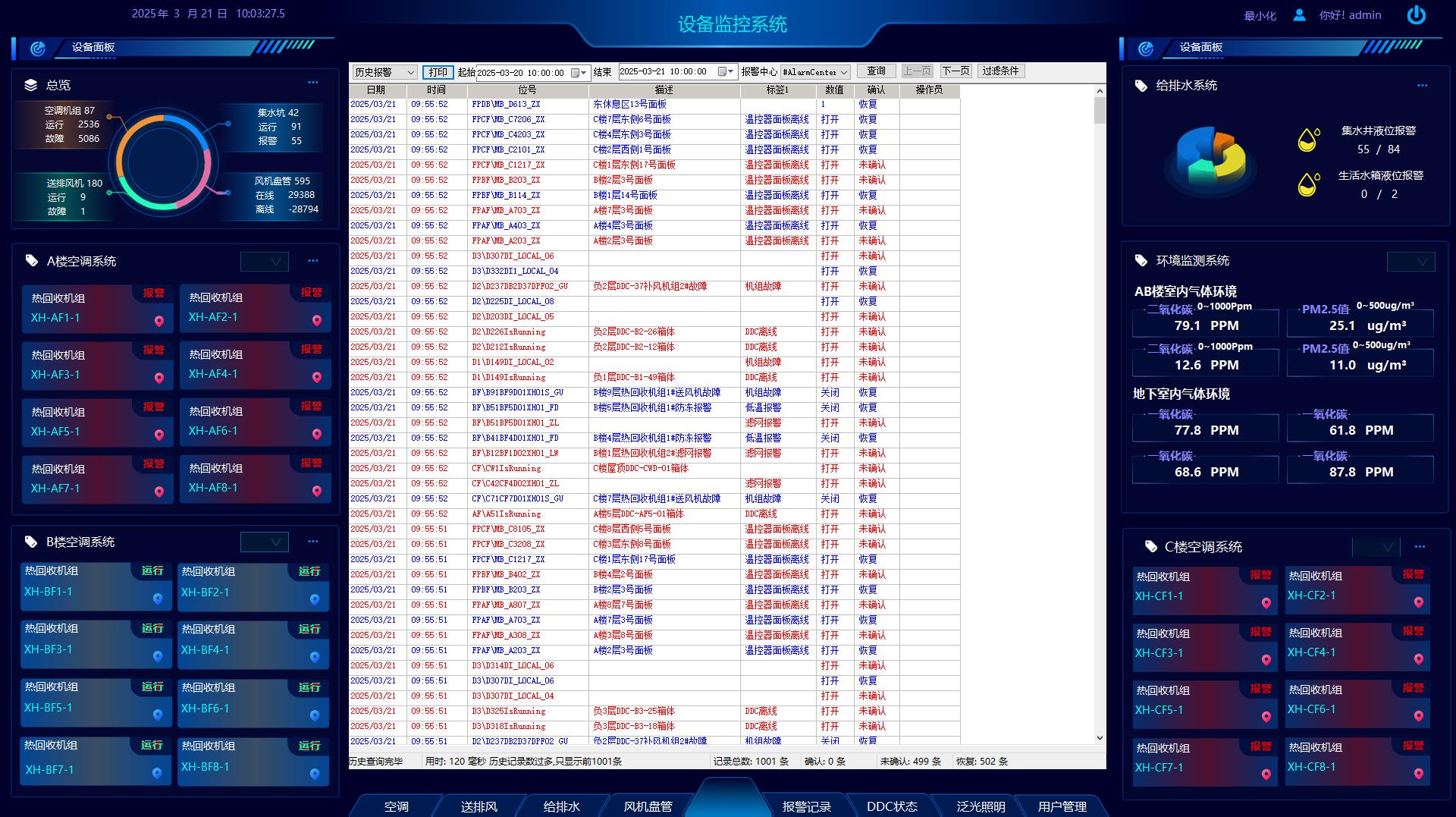 例如,空調系統監控畫面可實時顯示各機組溫度、濕度、風量等參數的變化,以及機組啟停狀態,便于管理人員及時掌握設備運行情況。