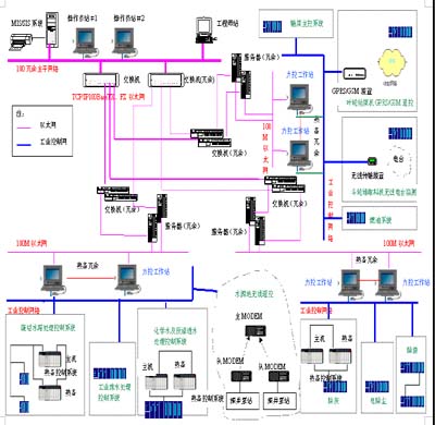 火力發(fā)電廠輔助車間集中控制包括水、灰、煤控制點(diǎn),采用分散PLC和力控監(jiān)控組態(tài)軟件實(shí)現(xiàn)集中控制,支持多種工業(yè)實(shí)時(shí)控制網(wǎng)絡(luò),部分控制點(diǎn)采用遠(yuǎn)程傳輸方式,拓?fù)鋱D展示工業(yè)控制網(wǎng)絡(luò)和以太網(wǎng)。