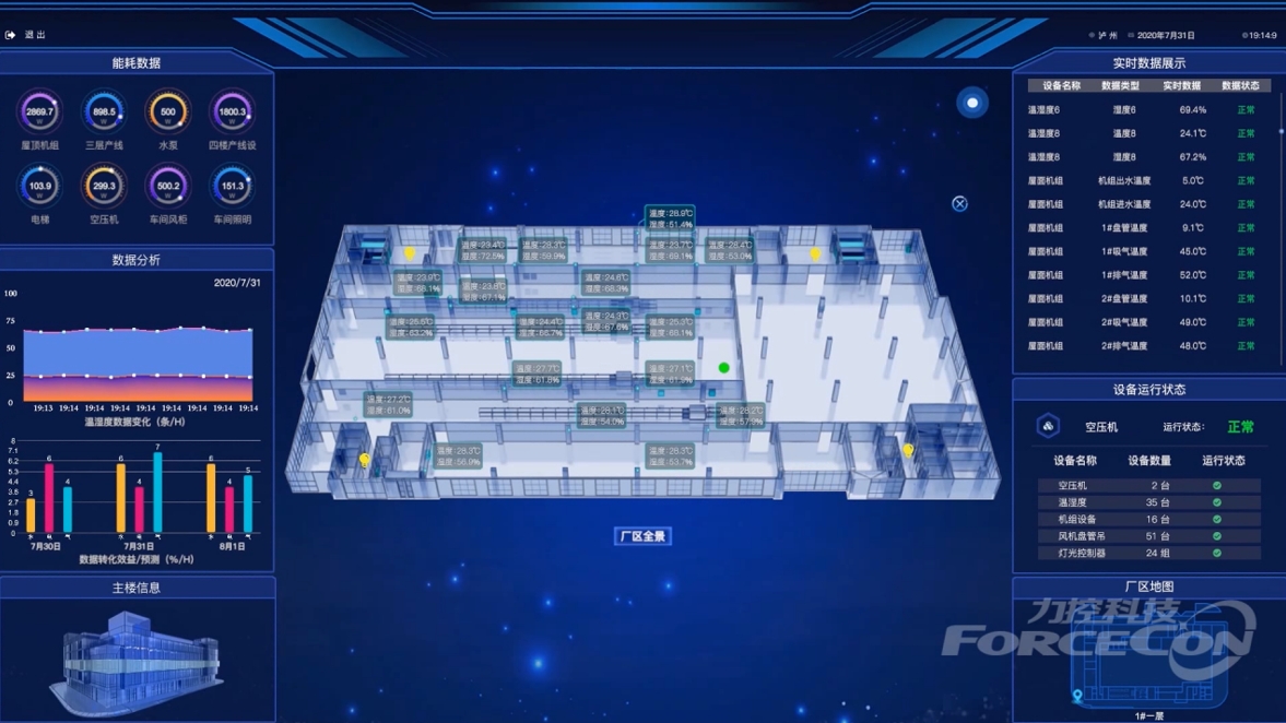 智慧廠務管理平臺ForceCon-FMCS為廠務中央監控與運維系統,可為工廠的信息生產及安全管理體系提供了很好的平臺,首先在體系中形成了原始的數據積累,為安全生產提供了數據分析保證,其次為企業提供了良好的管理手段,可以在生產運營中根據實際的情況調整管理方法,也為生產第一線的值班人員減輕了負擔,徹底解決在過去由人工巡視和人工記錄日志的生產模式,完全由計算機全天候自動化處理,同時也避免了由人為原因造成的安全隱患。可有效的將各子系統相連接起來,將工作效率大大的提高該系統采用客戶端/移動端/服務器相結合的系統結構、組態工具等先進技術,具有容量大、響應快、可靠性高、組態方便靈活等特點,能夠為實現管理現代化提供有力的支持。