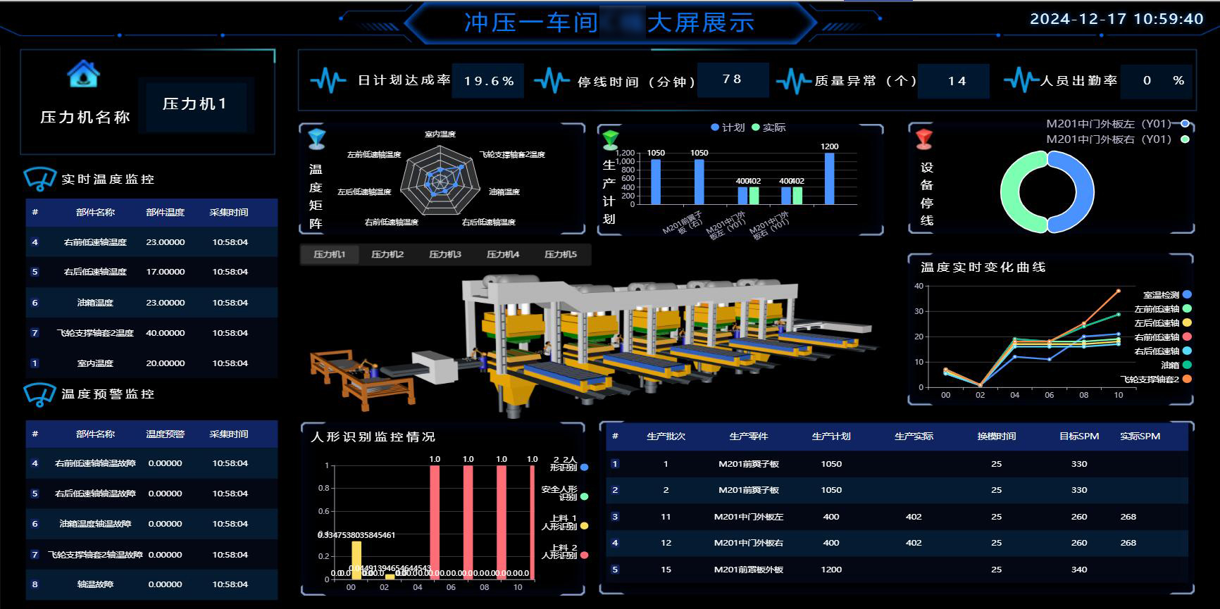 針對某車企數據孤島林立、網絡覆蓋不足、設備協同低效等問題,力控為其量身打造了汽車整車智能工廠生產過程實時監控系統,通過全場景可視化、智能預警、數據驅動優化等功能,助力車企實現生產全流程的透明化管控與高效協同。
