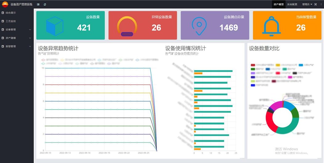 設備資產服務器部署力控設備資產系統,對公司各重點設備資產進行管理,用戶可自行選擇設備展示實時生產數據及靜態數據,按氣礦層級結果查看某場站某設備當前運行情況及設備臺賬信息。