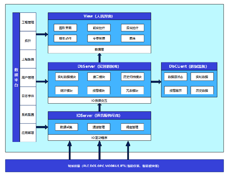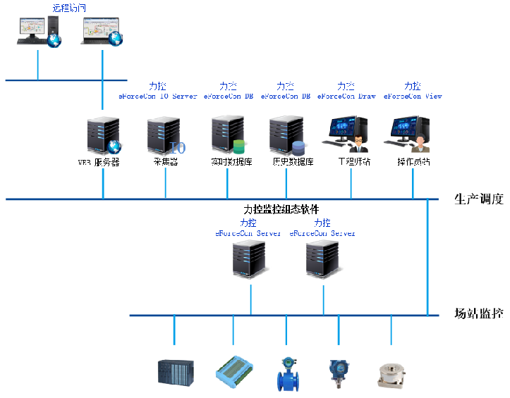 ForceSCADA應(yīng)用于企業(yè)調(diào)度級生產(chǎn)管理,針對無人值守站及客戶端工程多且復(fù)雜的特性,可通過工程數(shù)據(jù)管理平臺(tái)“遠(yuǎn)程部署”構(gòu)筑工程師站和客戶端站,實(shí)現(xiàn)對整個(gè)系統(tǒng)工程的統(tǒng)一管理。