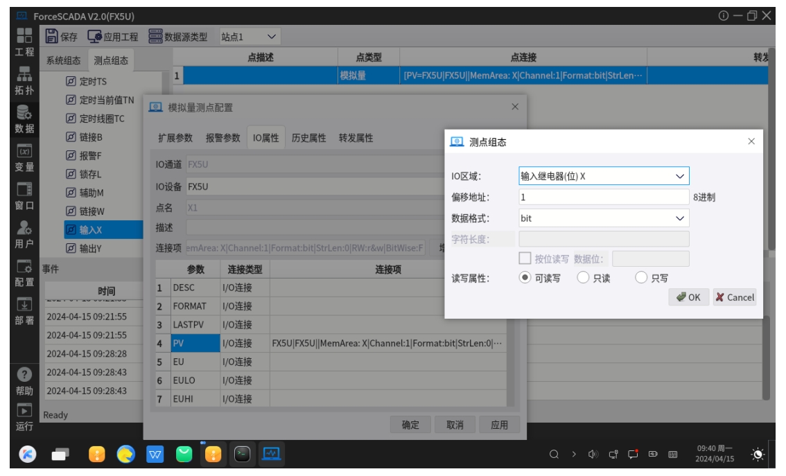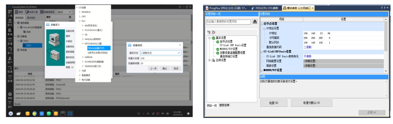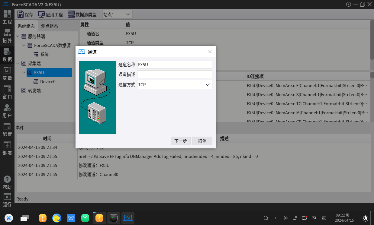 在ForceSCADA與三菱FX5U設(shè)備通信的配置方式如下: