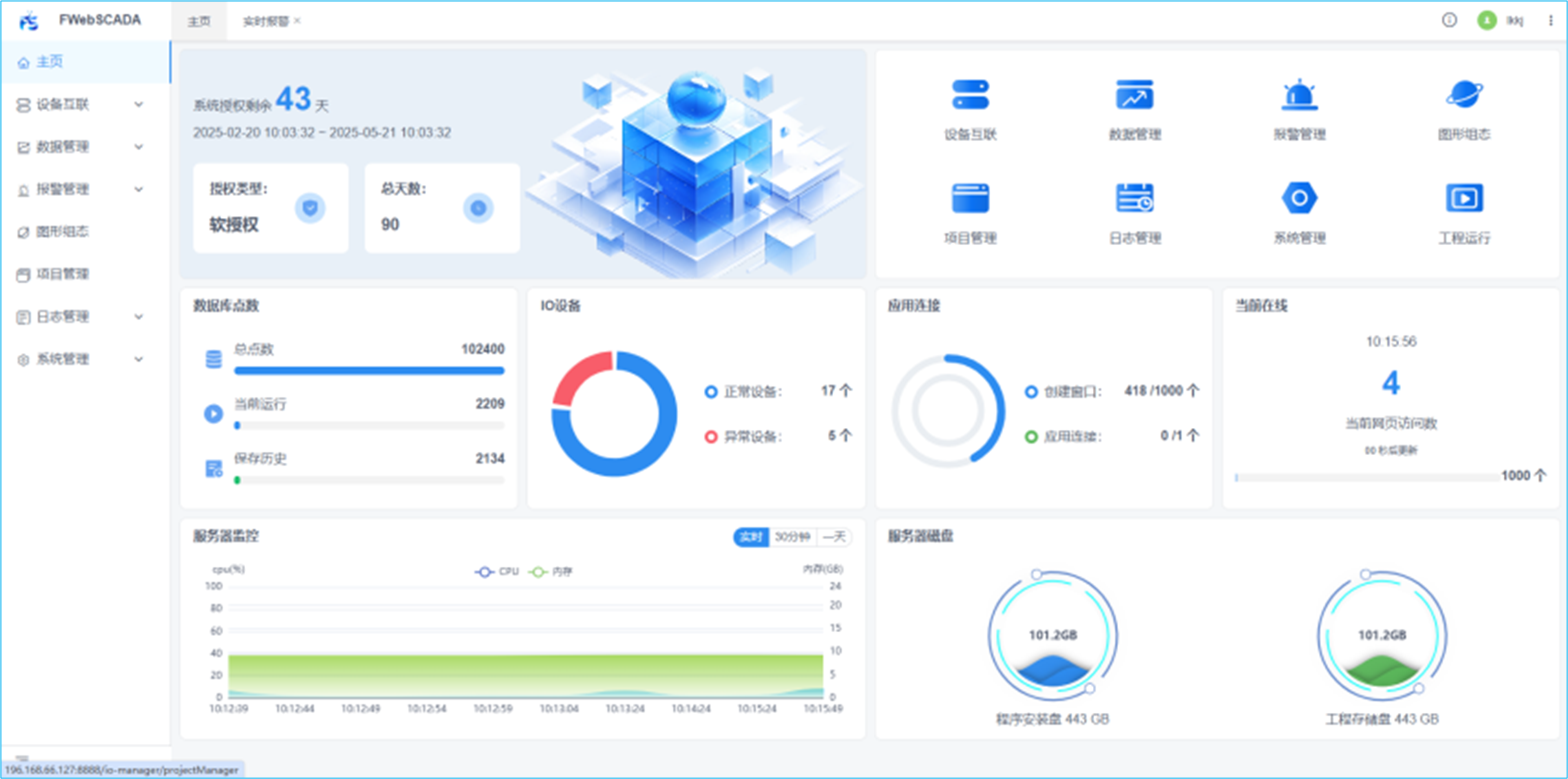 FWebSCADA 采用采集 + 存儲 + 服務 + 平臺一體化設計。一體化部署設計大大降低采集、存儲、服務之間的傳輸延時,降低運維成本,提高安全性。一體化采集可實現設備層數據的高度集中,消除信息孤島,可貫穿控制層、存儲層和監視層的數據和邏輯鏈路,實現跨層級的功能協作和數據共享。