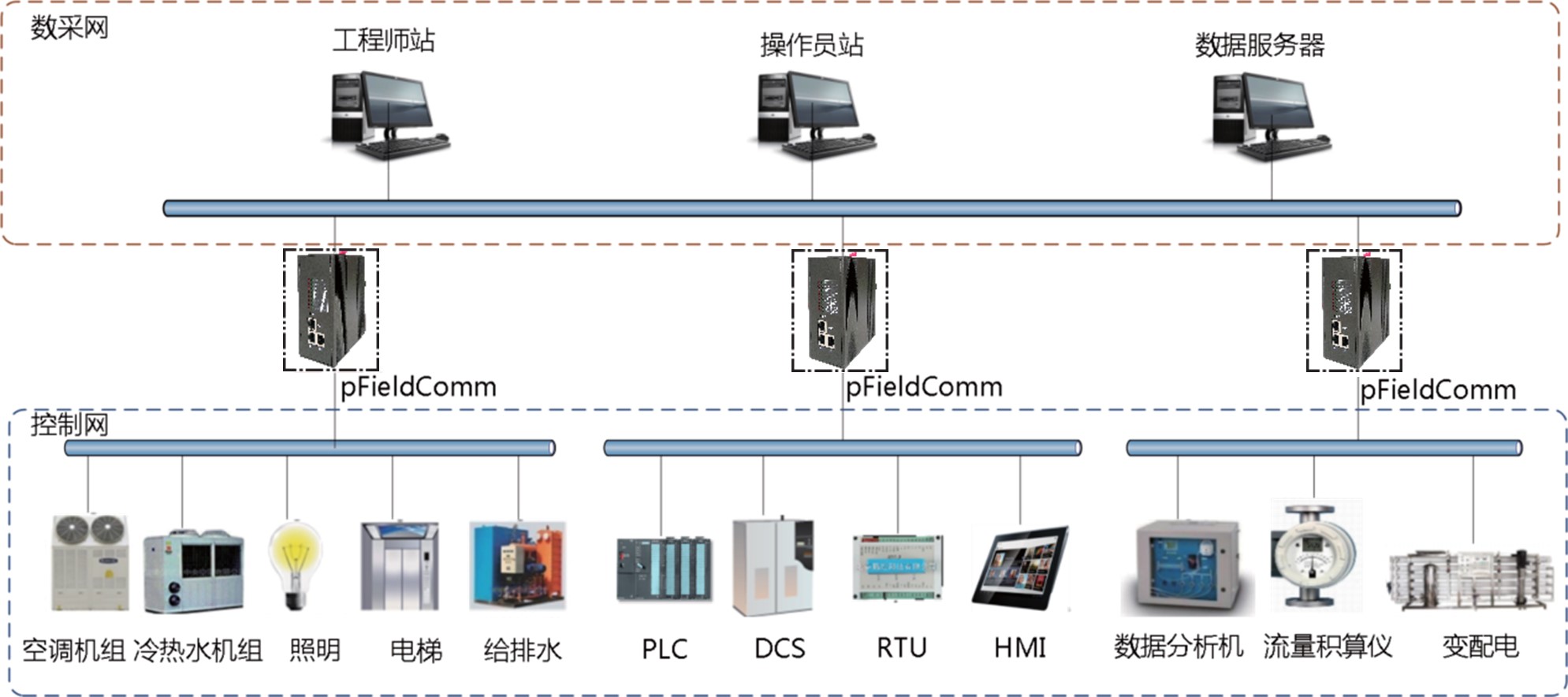 pFieldComm系列工業通信網關專門針對信息集成過程中各種軟件系統、控制器及數據采集設備通訊協議不一致造成的通信不暢問題而開發。采用高性能嵌入式硬件平臺,內嵌力控華康自主研發的工業數據采集和處理系統,具有多種通信規約庫,可以實現對不同軟件系統、控制器和現場設備數據的集中采集、預處理、協議轉換和復用轉發。可用作分布式數據采集裝置、工業協議轉換網關、電力通訊服務器或通訊前置機、能源、環保、樓宇數據采集設備等使用,廣泛應用于發電、變電、化工、石油、樓宇、水利、冶金、機械、交通、環保等領域異構系統的互聯互通和信息集成。