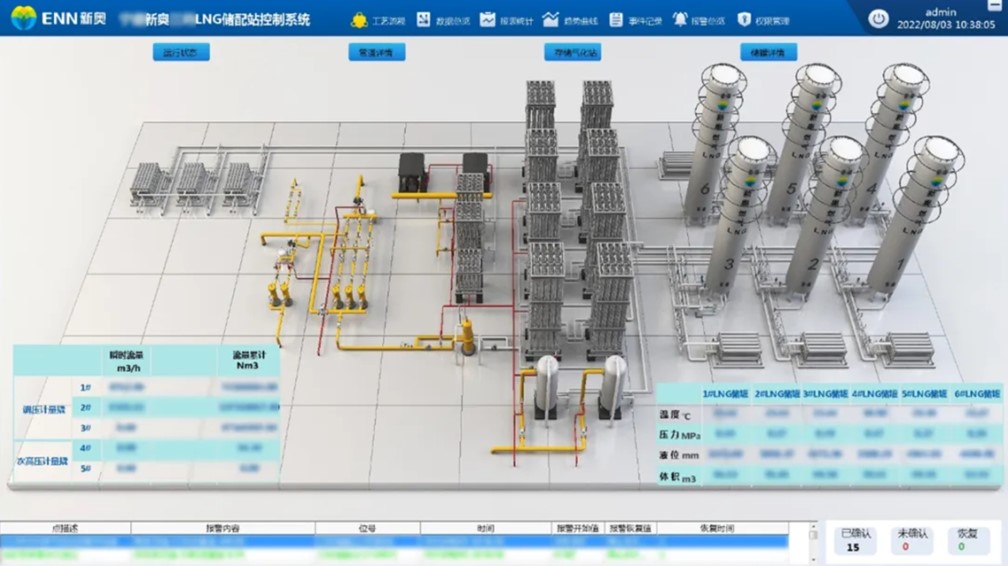 新奧燃氣將生產安全視為生命線,追求以技術手段保障安全?;诖耍乜萍紴樾聤W燃氣搭建了SCADA集控中心,應用力控SCADA平臺組態軟件eForceCon實現下轄場站的自動化應用,并通過軟件系統將門站、加氣站及計量點接入IOT云平臺系統。