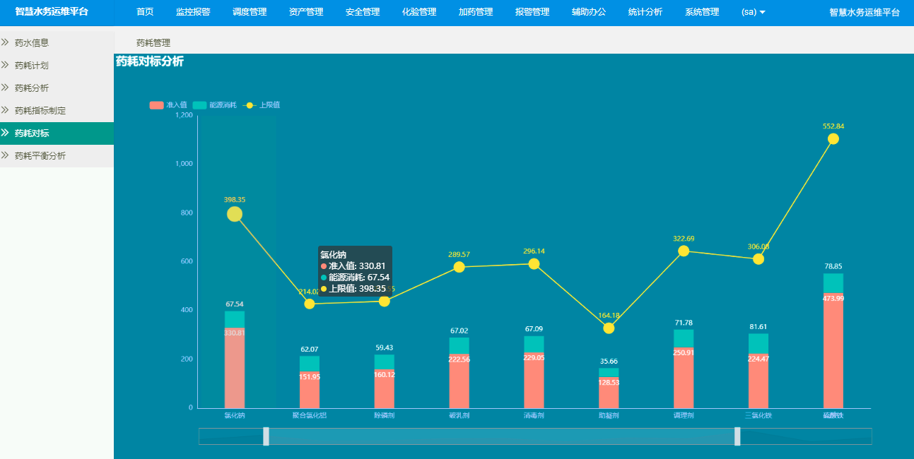 實(shí)現(xiàn)對(duì)各單元生產(chǎn)中消耗的電、藥劑等進(jìn)行統(tǒng)計(jì)、分析、匯總,以此實(shí)現(xiàn)生產(chǎn)成本分析;