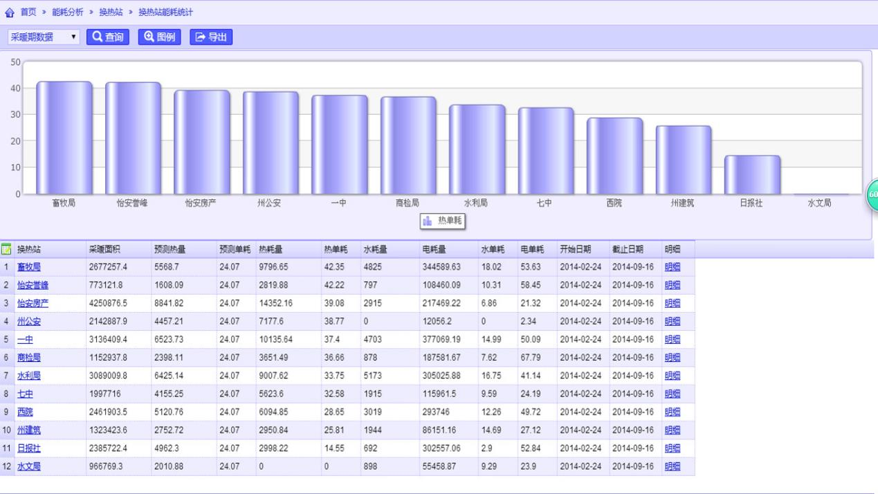 通過對換熱站耗熱、耗電、耗水等信息的管理分析,及時(shí)發(fā)現(xiàn)供熱問題,及時(shí)解決問題,為熱力公司節(jié)約能源,降低運(yùn)行費(fèi)用。
