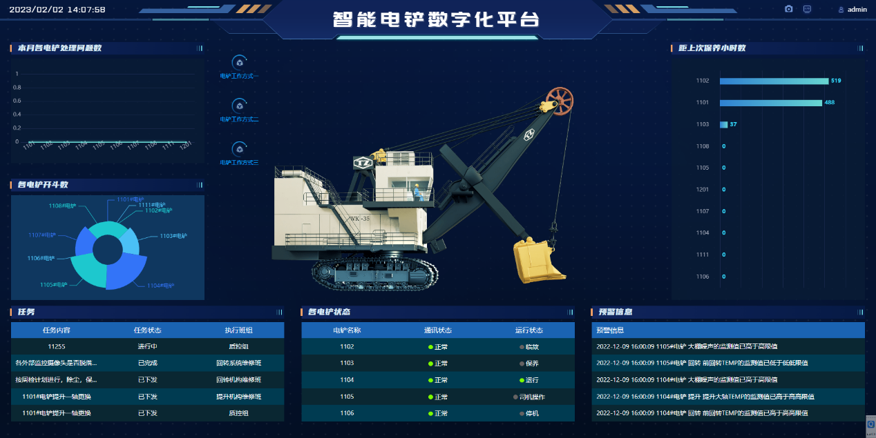 平臺通過智能化和大數(shù)據(jù)分析的先進技術(shù)手段對電鏟設(shè)備的故障做到早發(fā)現(xiàn)、早處理。確保了電鏟設(shè)備的正常運行,從而避免由電鏟故障引起的減產(chǎn),影響公司的經(jīng)濟效益。